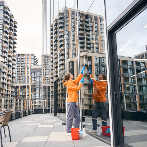 Limpeza especializada de vidros e montras para garantir transparência e uma imagem cuidada do seu espaço.